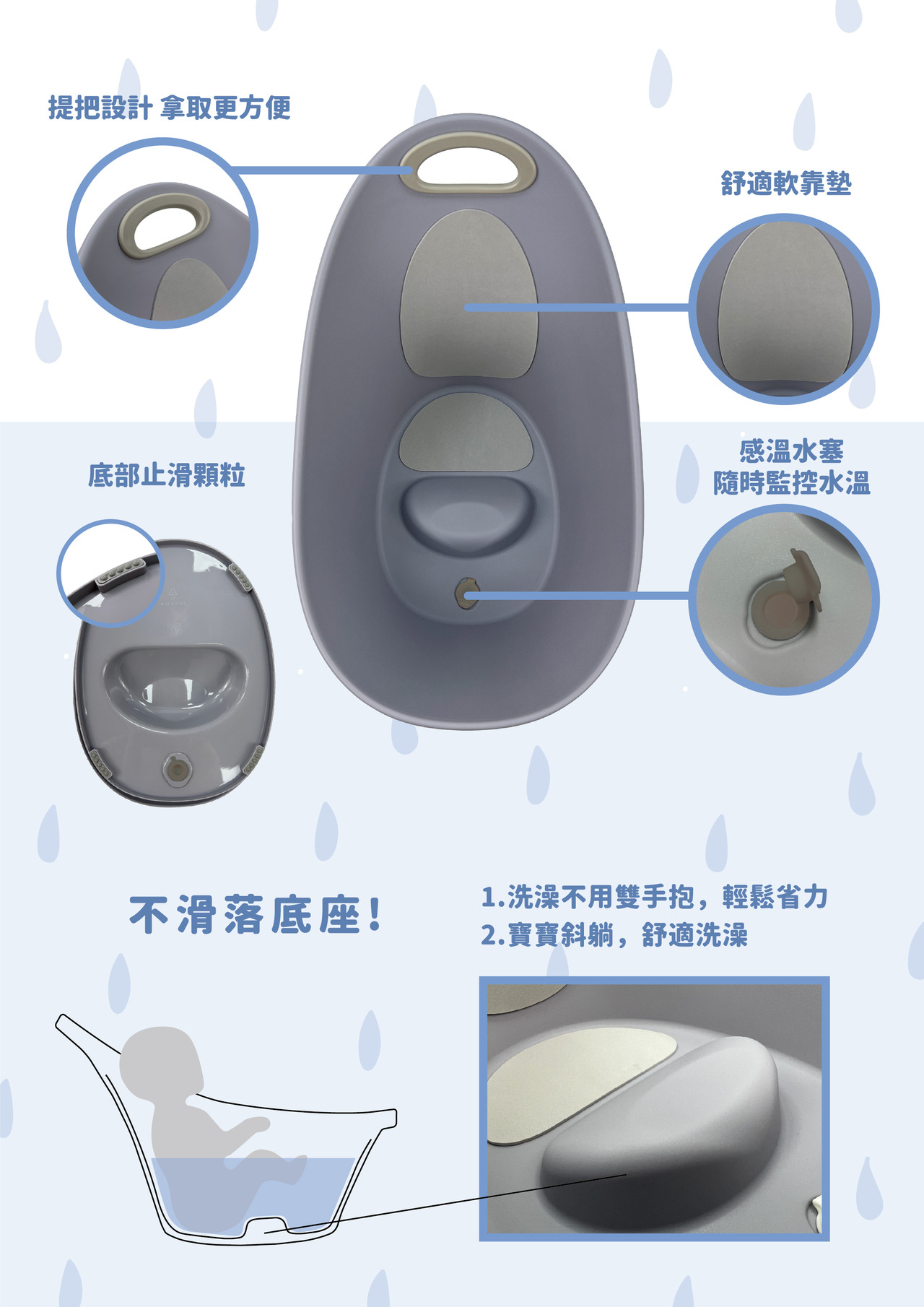 底座凸起設計,讓寶寶不易滑落澡。